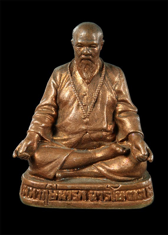 รูปหล่อรุ่นแรก หลวงพ่อจรัญ วัดอำพวัน สิงห์บุรี ปี31 ทองแดงรมดำ |