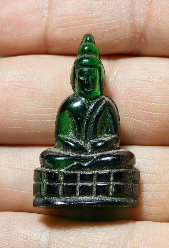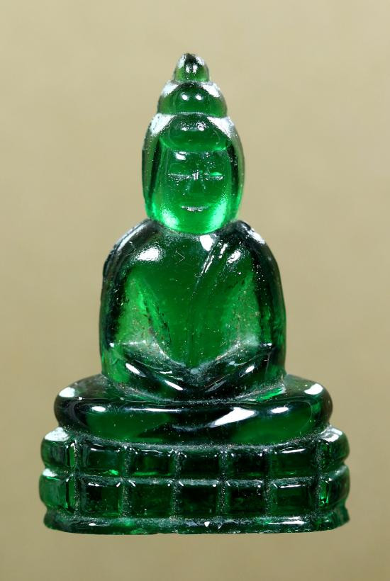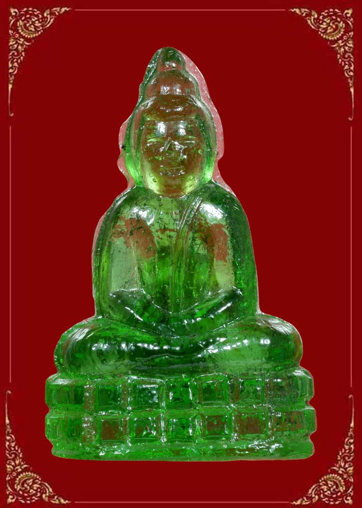 พระแก้ว หลวงพ่อเจียง วัดเจริญสุขาราม รุ่นแรก เนื้อแก้วสีเขียว ปี2491 จ.สมุทรสงคราม |