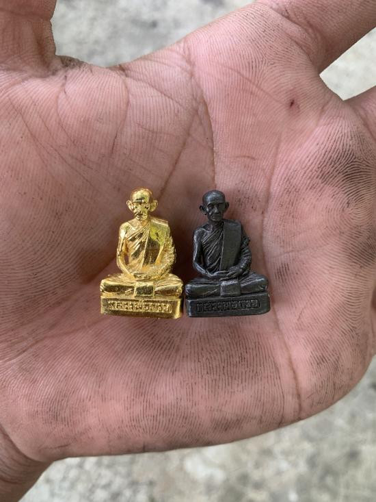 เเพ็คคู่รูปหล่อหลวงพ่อกวยปี60 รมดำ กระไหล่ทอง สวยเดิม |