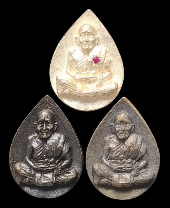 รูปเหมือนปั๊ม หลวงปู่นะ วัดหนองบัว จ.ชัยนาท ที่รฤกครบ ๘ รอบ เนื้อทองเหลือง 2 องค์ เลี่ยมเงิน 1 องค์ ก้นมีจารทั้ง 2 องค์สายหลวงปู่ศุข |