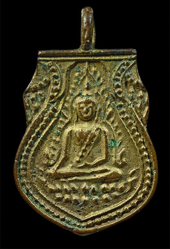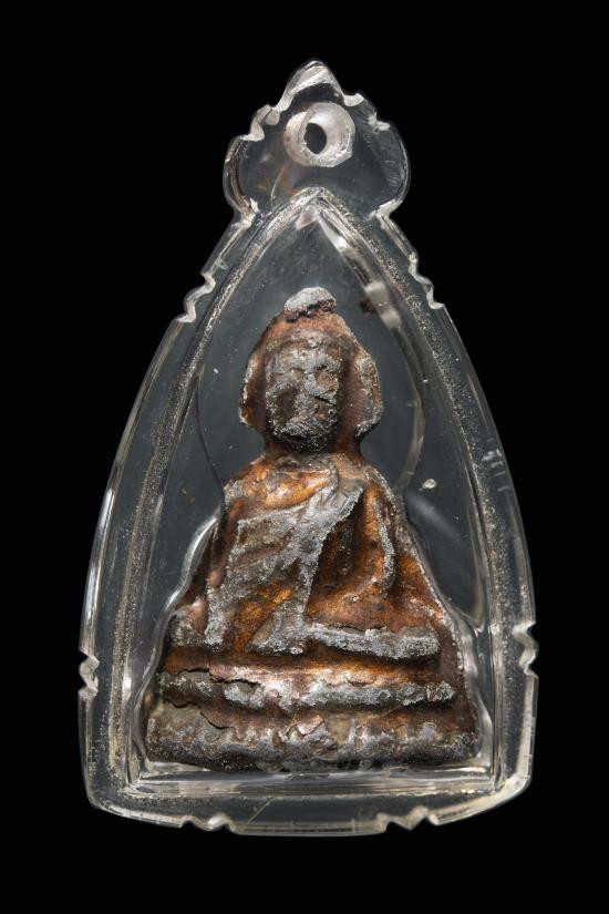 พระพุทธหลังยันต์ เขี้ยวหมาป่า ชินตะกั่ว พ่อดำ วัดบางกุฎีทอง |