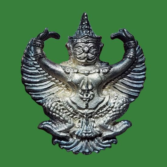 พญาครุฑ พระอาจารย์วราห์ รุ่นมหาราช (จปร.)เนื้อเงินหลังกระดุม ปี 2539 พร้อมบัตรการันตีรับรอง |
