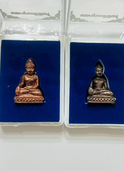 เคาะเดียวแดง รูปเหมือนปั๊ม เสาร์ห้า หลวงพ่อลออ พิมพ์นิ้วกระดก เนื้ออัลปาก้า รวมสององค์ |