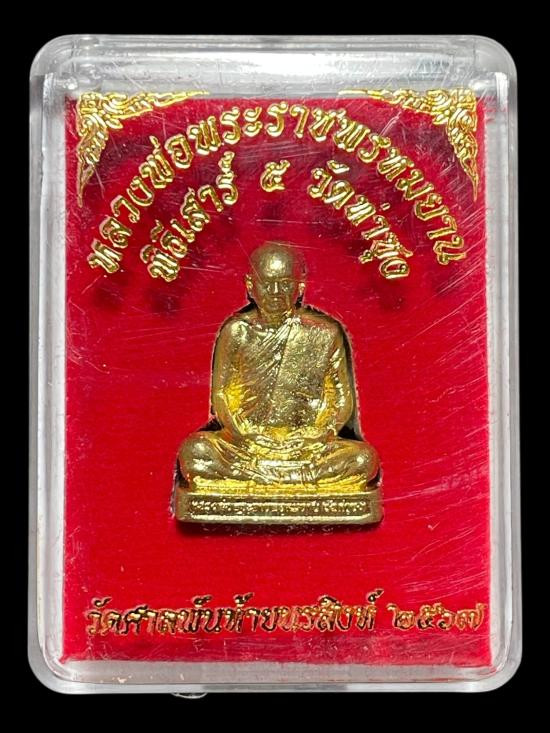 รูปหล่อหลวงปู่ศิลา รุ่นรวยโกฏิล้าน เนื้อทองฝาบาตร เลขโค็ต757 กล่องเดิม |