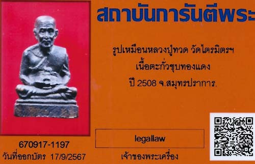 รูปหล่อหลวงปู่หลิว วัดไร่แตงทอง รุ่น ทบ. ปี 2539 อุดกริ่ง แดง120 |