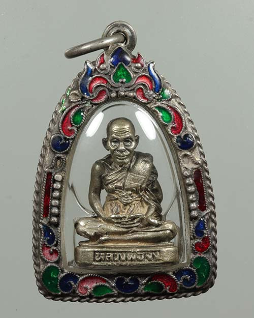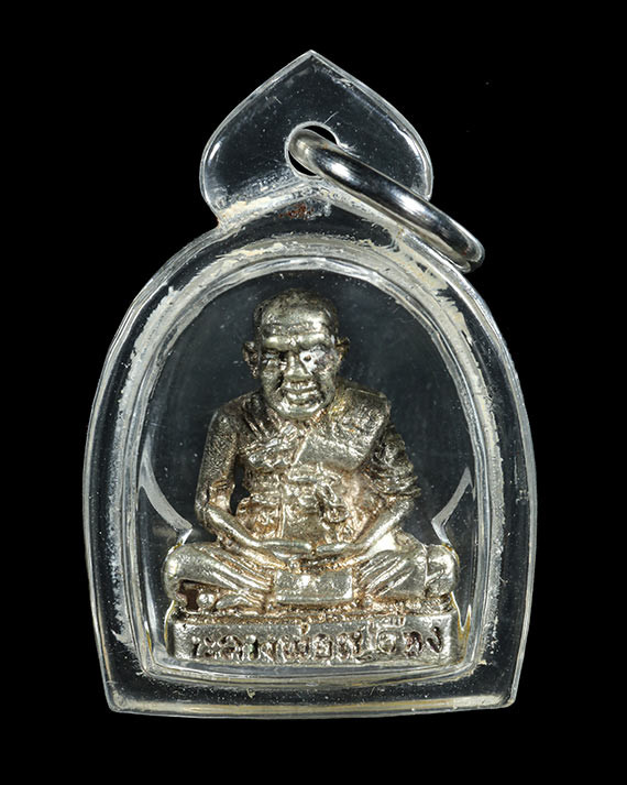 รูปหล่อ หลวงพ่อจง วัดหน้าต่างนอก จ.อยุธยา เนื้อเงิน เลี่ยมเงินลงยา อย่างดี |