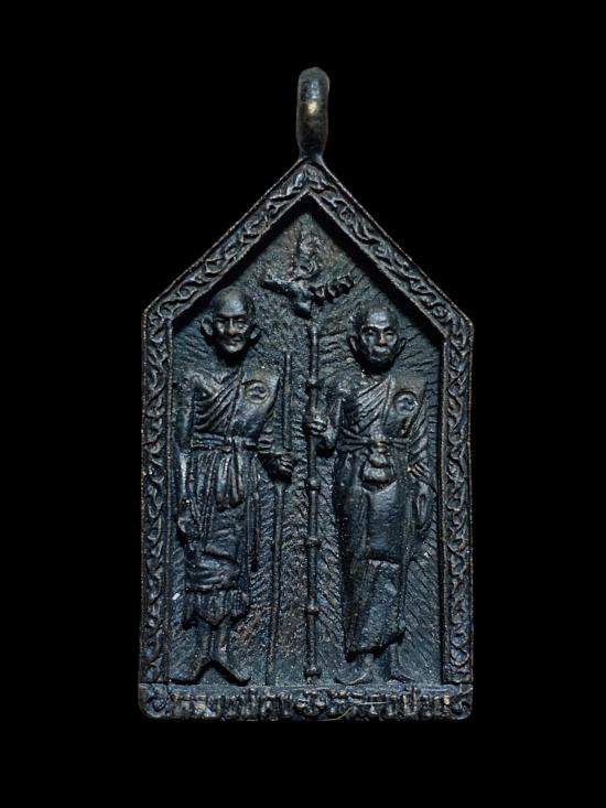 พระพันแปดไฟ หลวงพ่อสาย วัดหนองสองห้อง จังหวัดสมุทรสาคร พิมพ์สองหน้า เนื้อทองผสม |