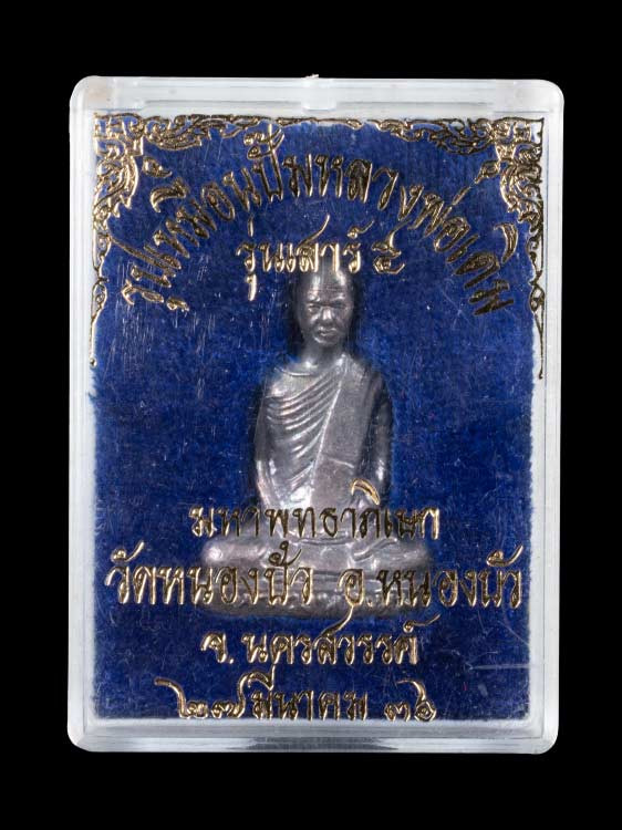 รูปหล่อหลวงพ่อเดิม วัดหนองโพ ออกวัดหนองบัว ปี26 เนื้อเงิน 2โค๊ต พร้อมกล่อง |