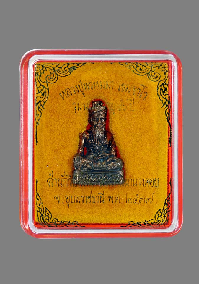 รูปหล่อพระอุปคุตมหาเถระ หลวงปู่หงษ์ พรหมปัญโญ วัดเพชรบุรี (สุสานทุ่งมน) จ.สุรินทร์ ปี54 เนื้อชนวน อัดผงที่ก้น |