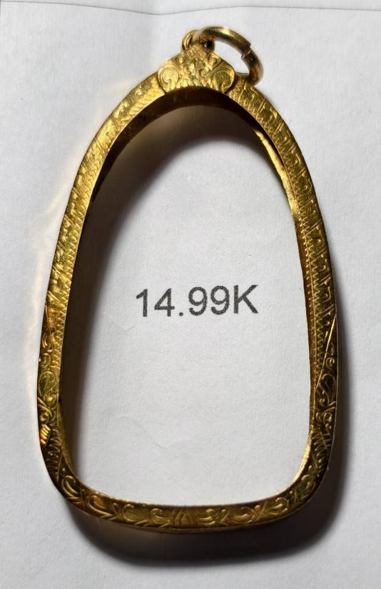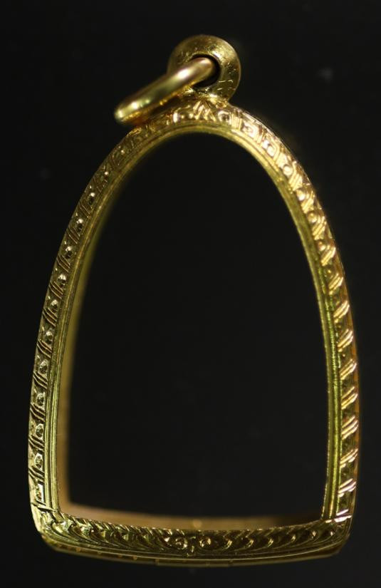 กรอบทองคำแท้ ทรงห้าเหลี่ยม ทองเก่าหนาๆ สวยๆ %สูง น.น. 3.8กรัม เดิมใส่พระขุนแผน ลพ.โบ้ย หรือเกจิคณาจารย์ทั่วไปที่มีขนาดใกล้เคียง + บัตรรับรอง GPRA |