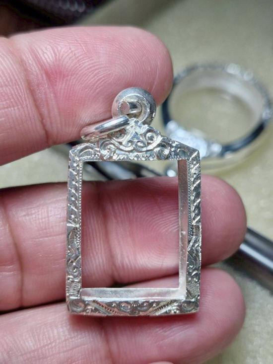 กรอบพระเงินแท้ 92.5% มือ2 เคยใส่เหรียญเสมาหลวงปู่ทวด ปี 2505 หน้าแก่ |