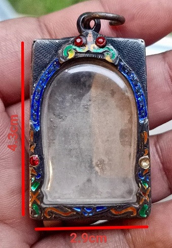 กรอบเงิน 92.5% มือ 1 ลงยาสุโขทัยยกซุ้มหัวสิงห์ ใส่เสมาหลวงปู่ทวดปี 2505 หน้าแก่ |