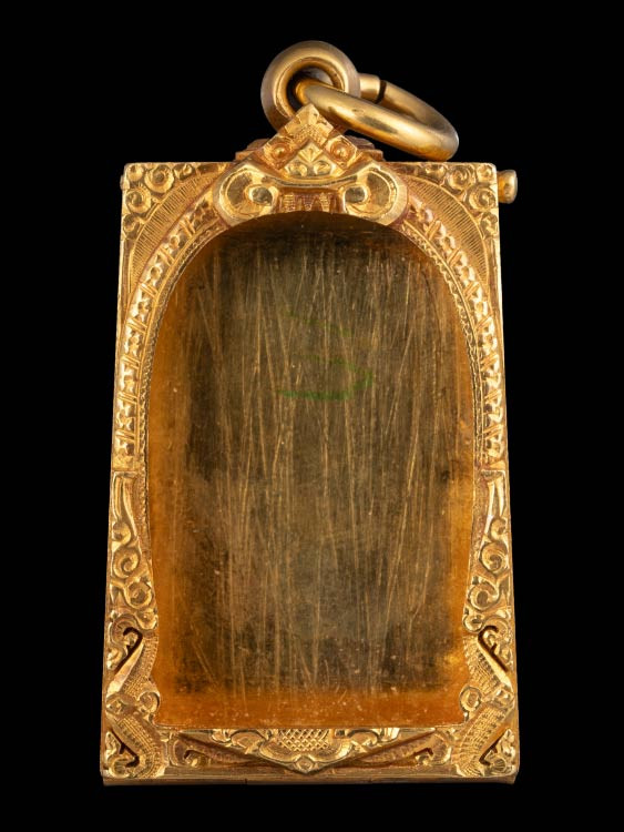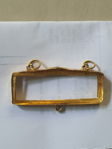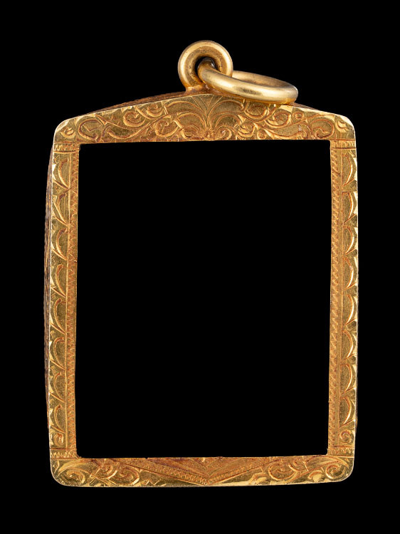 ประมูล กรอบทองลงยา มือ 2 เลี่ยมใส่เสมาหลวงพ่อทวด งานสั่งทำ นน. 6.43 กรัม พร้อมใบเช็ค % ทอง |