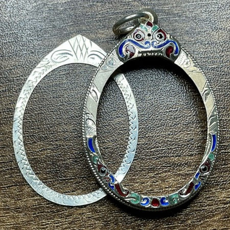 กรอบเงินรูปไข่ เงินลงยา งานสุโขทัย เงินแท้ 96 % ครับ |