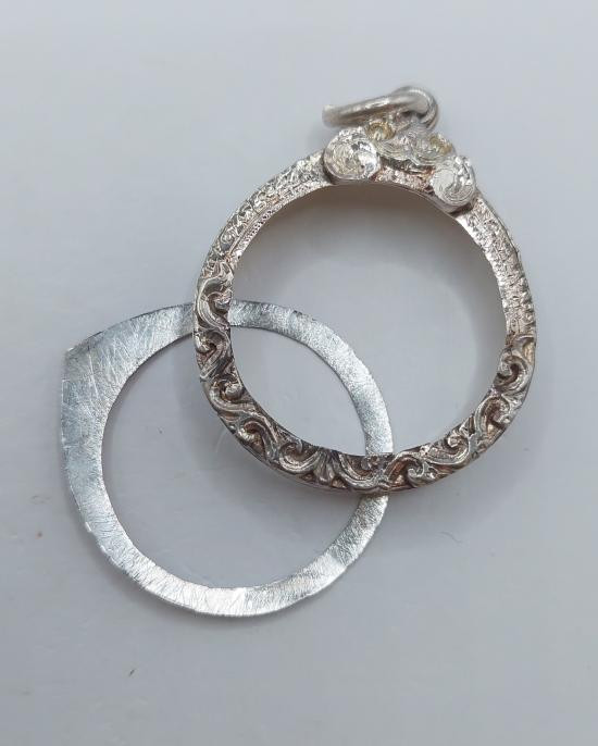 กรอบเงินแท้แกะลาย 92.5% ขนาดหน้าจอ2.1#3.3ซม. |