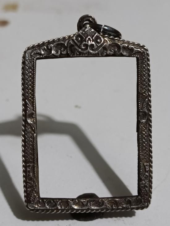 กรอบเงินแท้ งานสั่งทำ ใส่พระสมเด็จ ขนาด 3 * 4 ซม.หนาหนัก 6.71 กรัมสวยสมบูรณ์งานเก่า |