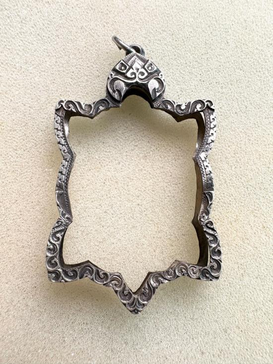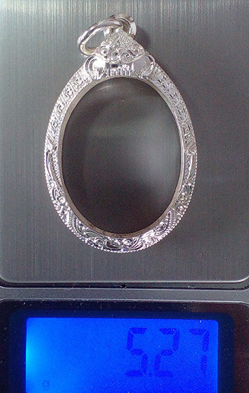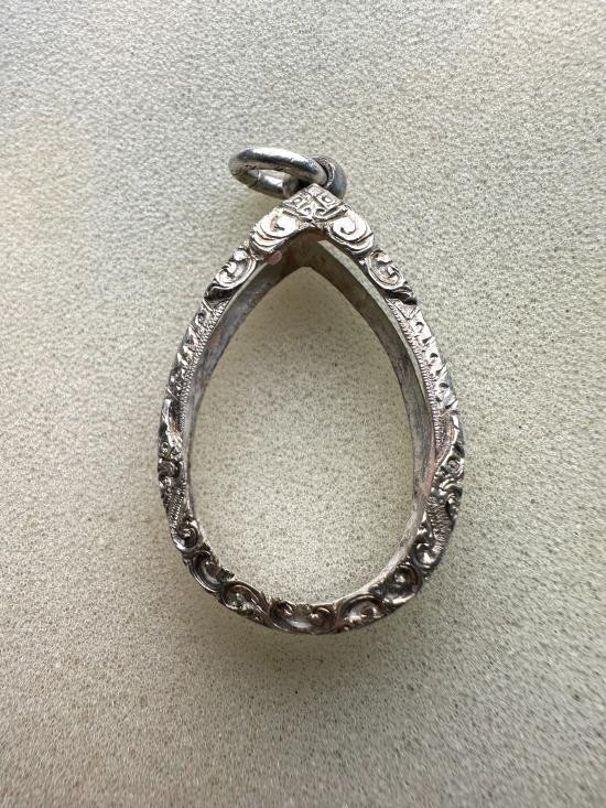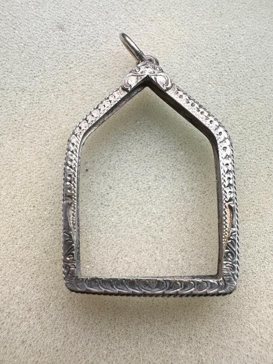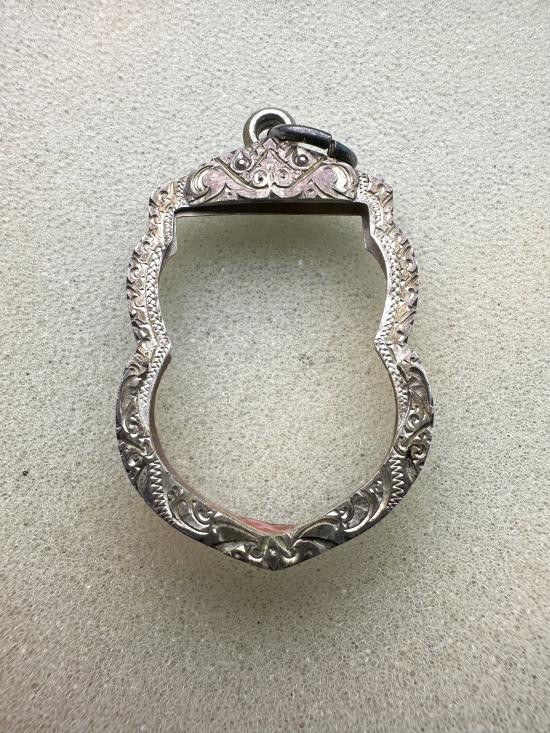 กรอบเงินสั่งทำเเกะลายปิดหลัง ขนาด 2.7X3.4 น้ำหนักช่างพร้อมพระที่ได้มาครับ สภาพสวย |