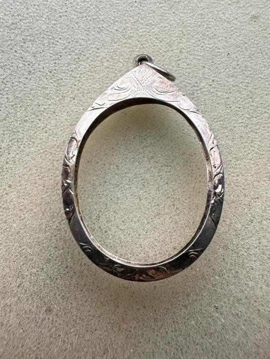 กรอบเงินแท้ รูปไข่ หนัก 2.60 กรัม พร้อมใช้งาน เคาะแรกแดงค่ะ |
