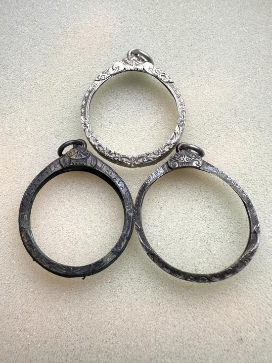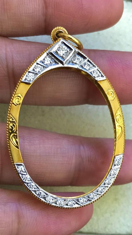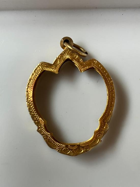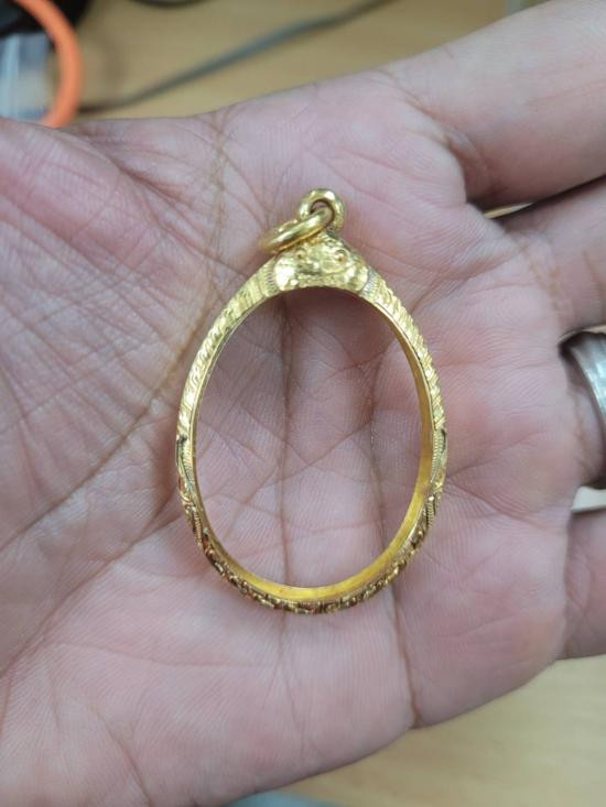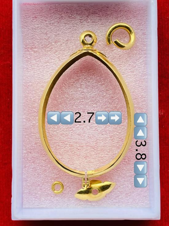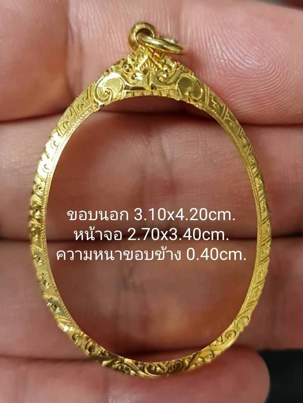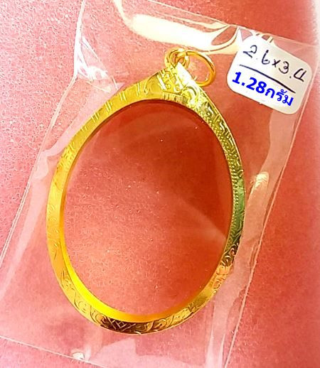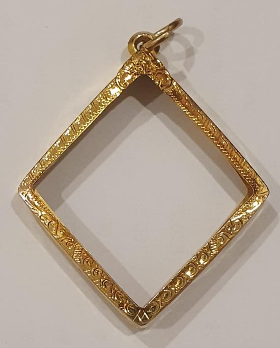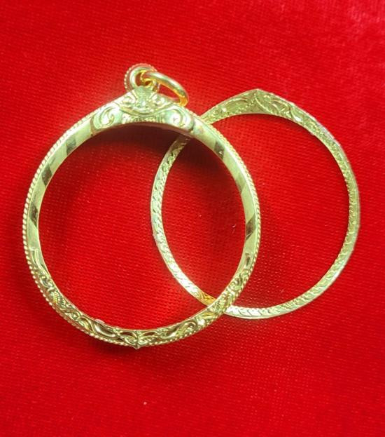 กรอบทองแท้มือสองสำหรับใส่ เหรียญและรูปหล่อขนาดเล็ก กว้างประมาณ 0.8 ซม หนัก 0.26 กรัม ตอกโค๊ดตรงห่วง 75 % |
