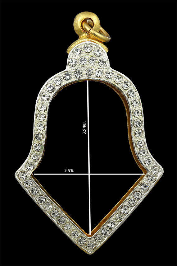 กรอบทองขนาดใหญ่ ทรงสิงห์,แพะ หรือเครื่องรางขนาดไกล้เคียง ( ลงยาร้อน ยกซุ้ม หัวสิงห์ หูเพชร ) ข้างปัดเงา ใต้ฐาน เจาะเกลียวโปเต้ ( เพชร CZ 2 เม็ด ) ขนาดจากขอบด้านใน สูง 2.5 Cm. กว้างจากฐาน 2.3 Cm. งานขึ |