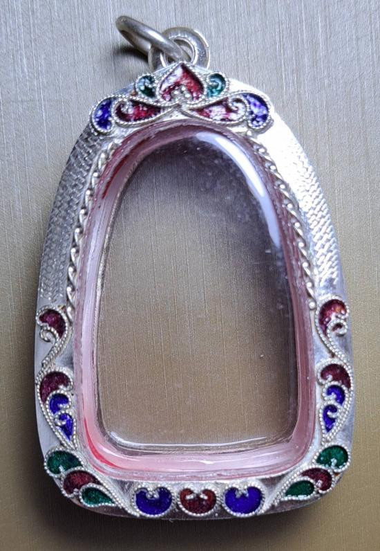 กรอบเงินลงยา ใส่รุ่นท้าวเวสสุวรรณหลวงปู่กาหลง น้ำหนัก 17.20 กรัม สภาพสวยไม่ฉีกขาดครับ |