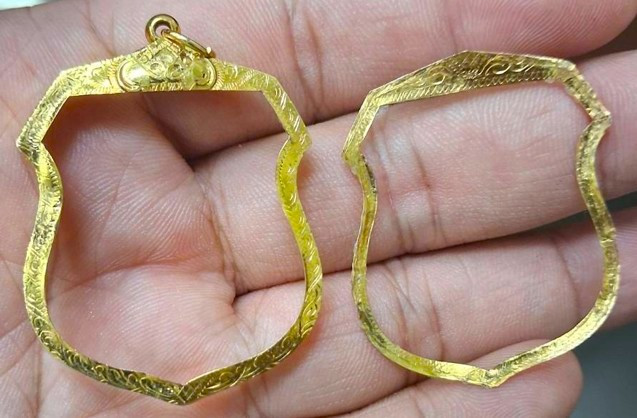 กรอบทองคำแท้ ทรงเครื่องราง เช่น สิงห์ แพะ เป็นต้น หนัก 0.9 กรัม ทอง 68% |