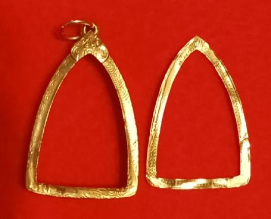 กรอบทองคำแท้ ทรงห้าเหลี่ยม ทองเก่าหนาๆ สวยๆ %สูง น.น. 3.8กรัม เดิมใส่พระขุนแผน ลพ.โบ้ย หรือเกจิคณาจารย์ทั่วไปที่มีขนาดใกล้เคียง + บัตรรับรอง GPRA |