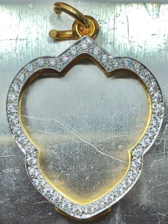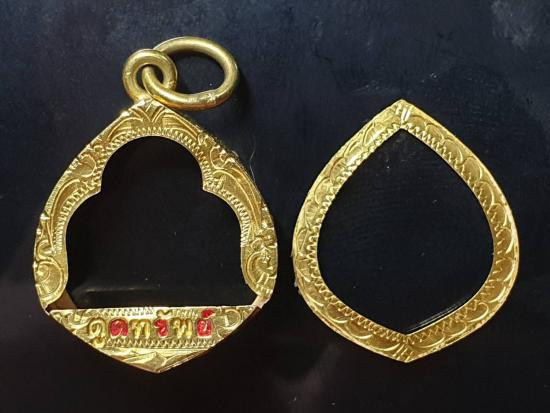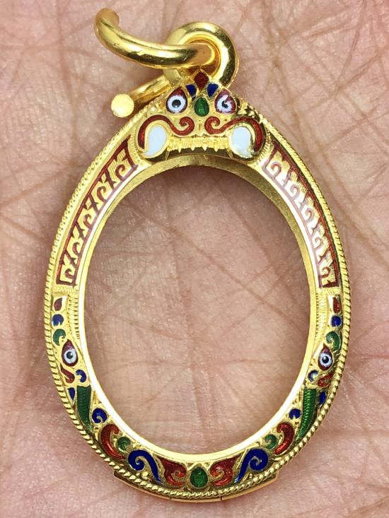 ประมูล กรอบทองลงยา มือ 2 เลี่ยมใส่เสมาหลวงพ่อทวด งานสั่งทำ นน. 6.43 กรัม พร้อมใบเช็ค % ทอง |