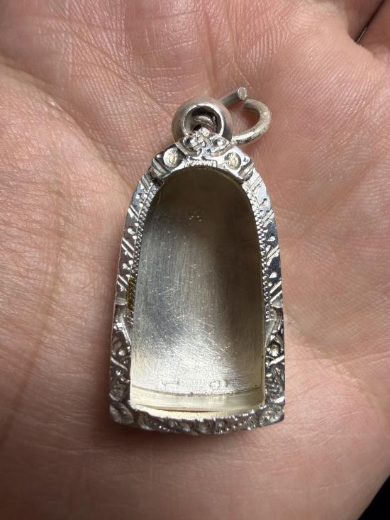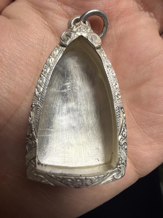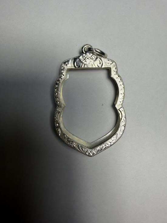 กรอบเงินสั่งทำเเกะลายปิดหลัง ขนาด 2.7X3.4 น้ำหนักช่างพร้อมพระที่ได้มาครับ สภาพสวย |
