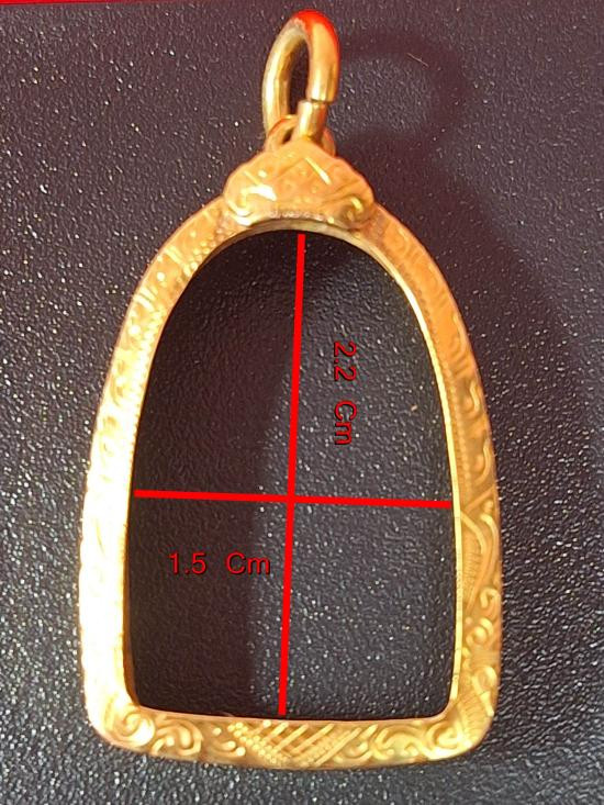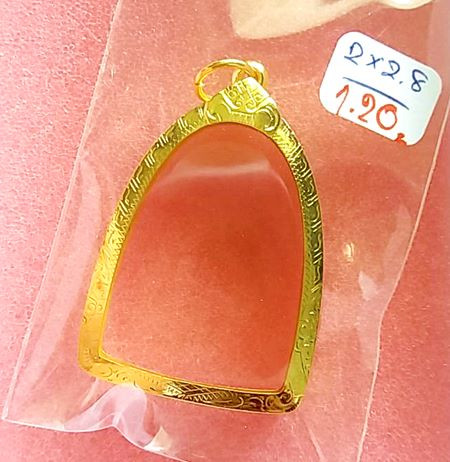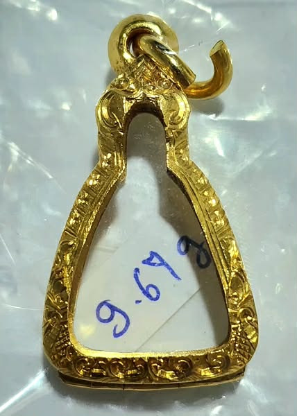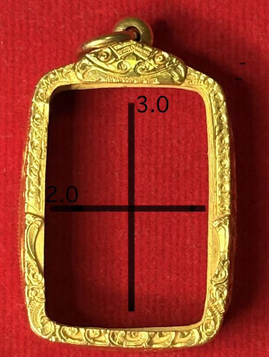 กรอบทองมือสอง ใส่พระสมเด็จยอดนิยน หรืออื่นๆทั่วไปที่ไกล้เคียง หน้าจอกว้าง 2.8 ซม., สูง 4.0 ซม. น้ำหนัก 2.81 กรัม เคาะเดียว |
