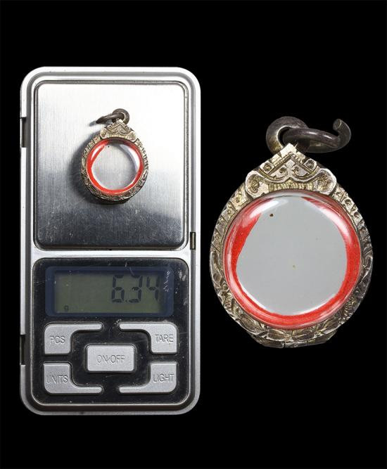 วัดใจของเหมามาขายถูกตามสภาพ กรอบตลับเงินแกะมือ ใส่พระหลวปู่ทวดพิมพ์พระรอด-วัดพระสิงห์ หรือใกล้เคียง |