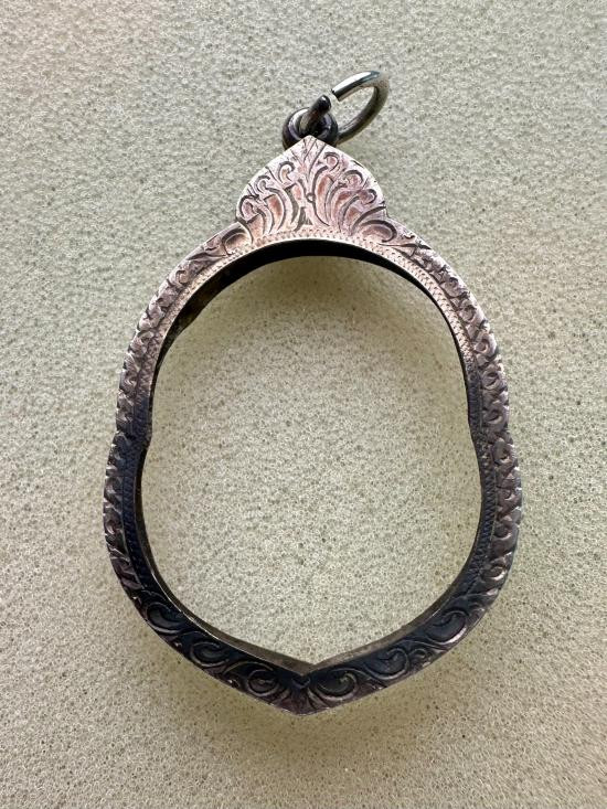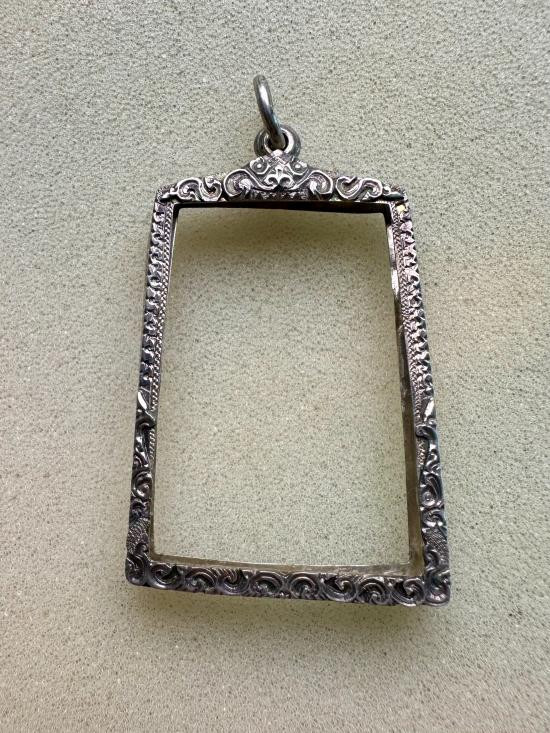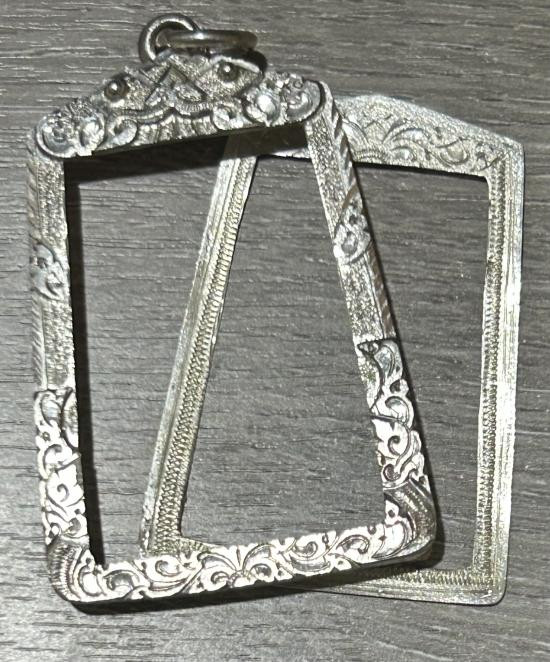 วัดใจ กรอบเงินมือ 2 สภาพดี งานสั่งทำ เลี่ยมใส่พระไว้ไม่เคยแขวนครับ |