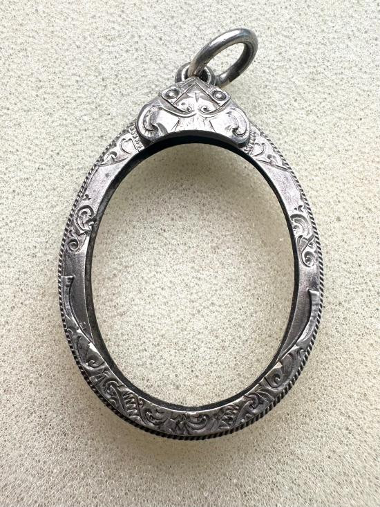 กรอบเงินแท้ ทรงรูปไข่ ใบนี้สวยค่ะ หนัก 5.03 กรัม ขนาดวัดจากด้านในกรอบ มีรูปเพิ่มเติมด้านล่างค่ะ |