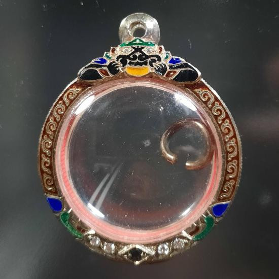 <<กรอบเงินแท้95%>>มือหนึ่ง ยกซุ้มหัวสิงห์ย้อย ใส่เหรียญหลวงพ่อกวย หลังหนุมาน-หลังยันต์ งานมือช่างทองแกะลายลึกๆสวยๆ หนัก5.61g |
