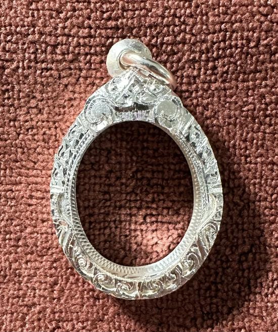 กรอบเงินแท้ทรงเสมาเก่า สภาพพอใช้ |