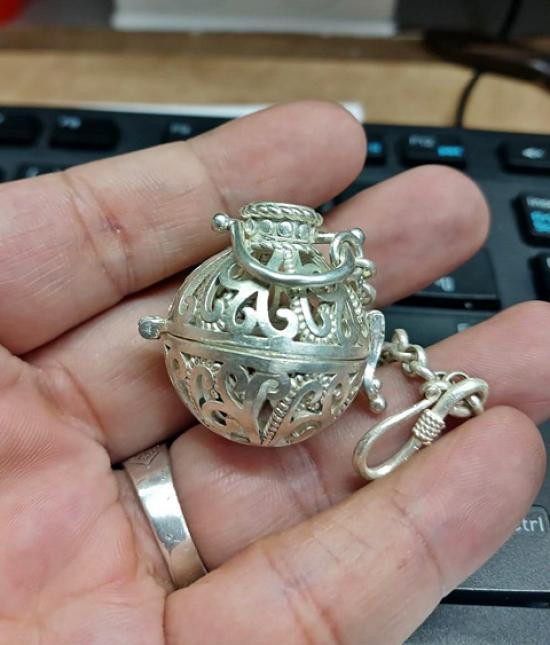 ตลับเงินมือ2 หนา เปอร์เซ็นต์สูง สภาพใหม่งานแกะมือใส่ซุ้มกอหรือขนาดใกล้เคียง |