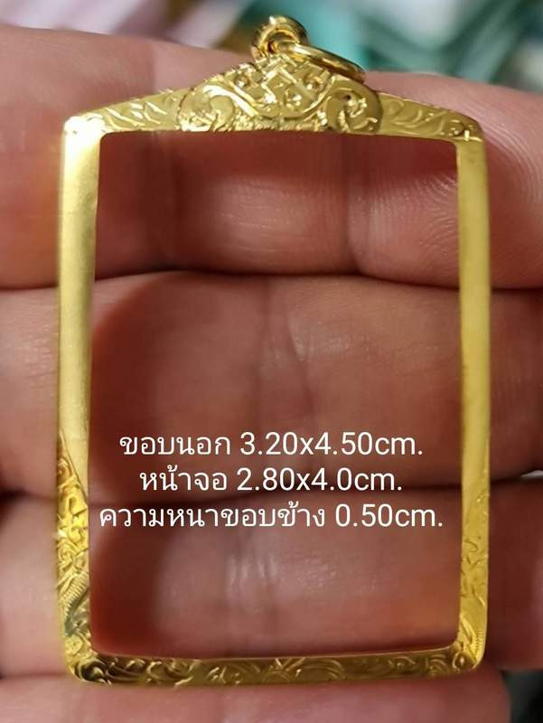 ---(วัดใจ)---กรอบทองมือ1 ใส่ปรกใบมะขาม ขนาดหน้าจอกรอบด้านใน 1.4x0.8 นน.0.68--- |