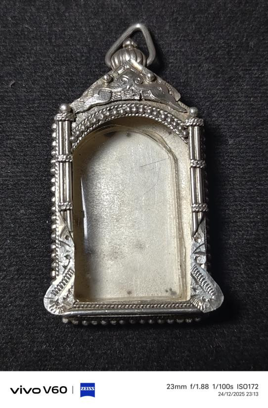 กรอบเงินพับหลังใส่พระสมเด็จ |