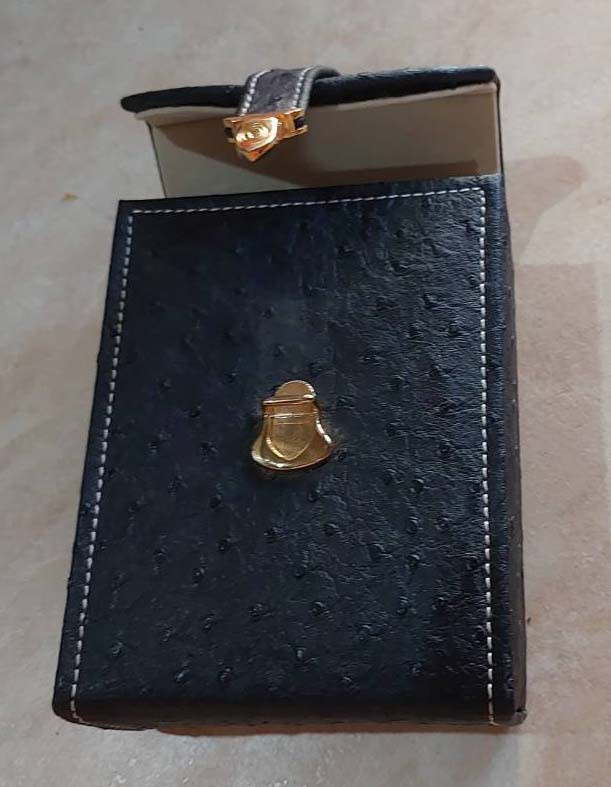 กระเป๋าเก็บของสะสมครื่องประดับ ภายนอกหุ้มหนัง PUลายนกกระจอกเทศภายในหุ้มกำมะหยี่สีครีม ขนาดพับ ก 11 x สูง 15 หนา 6 ซม. |