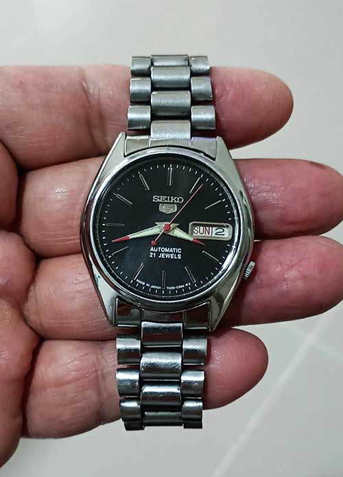 นาฬิกา ไซโก้ SEIKO N.5 21 Jewels รุ่น 7009 3040 F หน้าปัดดำ เดินได้ตามปกติ ตั้งวันที่สัปดาห์กดเม็ดมะยม ตั้งเข็มดึงสุด ดันเข้ากลางตั้งวันที่ รับประกันแท้ |