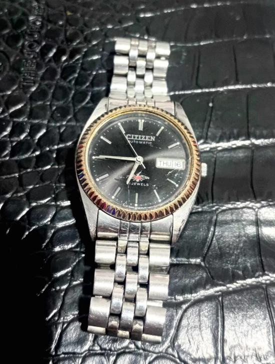 วินเทจ Citizen Automatic 21 jewels 37 มม.เดิมๆกระจกมีร่องรอยตามอายุการใช้งานเดินปกติวันที่ปกติเปลี่ยนเร็วได้สายยาว21ข้อ เปลี่ยนกระจกอย่างเดียวสวยเลยหรือไม่เปลี่ยนก็ได้จัดให้เคาะแรกพิจารณาก่อนเคาะครับ |