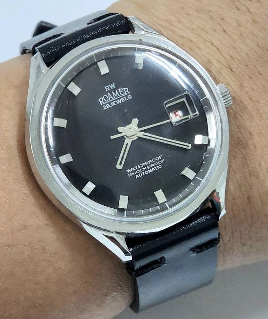 วินเทจ Cadet Automatic 21 jewels crystal swiss หน้าดำหลักทองเข็มทอง 37มม. สาย19ข้อยาวๆเดินปกติวันที่ปกติสวยๆครับ |