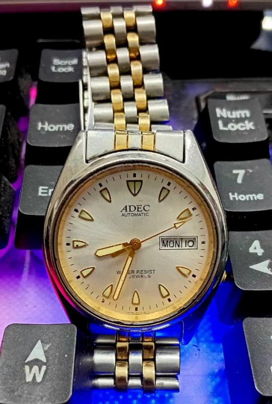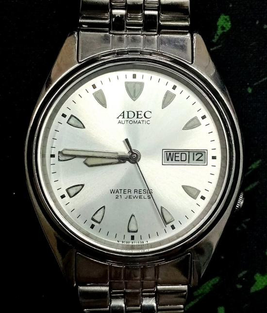 วินเทจหน้าขาวใสๆคลีนๆ ADEC Automatic 21 jewels 37 mm. โดยประมาณ สวยๆเดินปกติพร้อมใช้ วันที่เปลี่ยนปกติ สาย19ข้อสวยๆครับ |