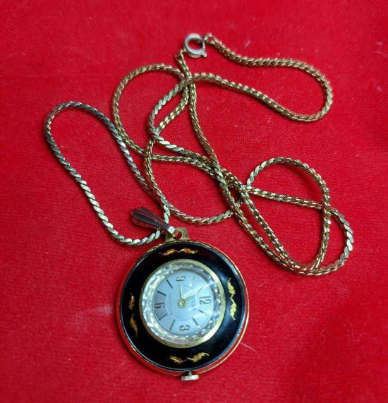 นาฬิกาพกหรือนาฬิกาจี้สตรีวินเทจแบรนด์ Taylor มีสร้อยสีทองเก่า ระบบไขลาน (Swiss Made) |