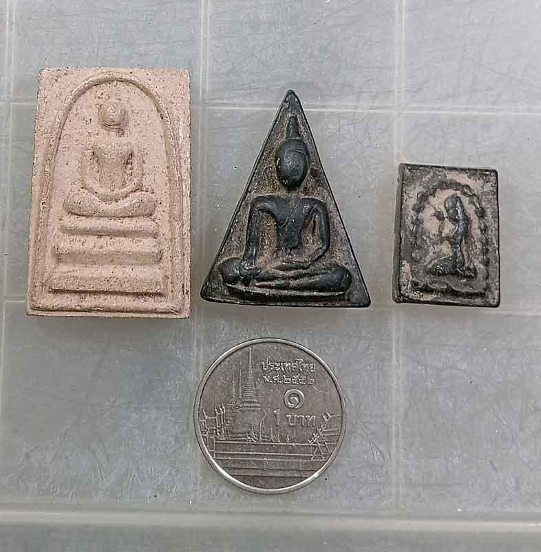 พระสมเด็จหลังติดเหรียญ ไม่ทราบที่ + นางพญา +นางกวัก ไม่ทราบที่