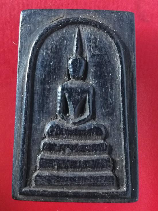 พระสมเด็จแกะจากไม้งิ้วดำ ด้านหลัง มีรอยจาร ไม่ทราบพระเกจิ