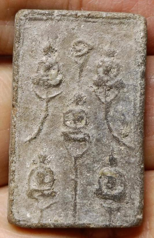 (เคาะเดียวแดง) พระคงลำพูน ด้านหลังปั๊มจมรูปเจดีย์ (เปิดเหมา 3 องค์)ไม่ทราบออกวัดไหน |