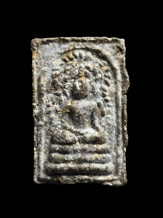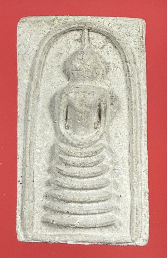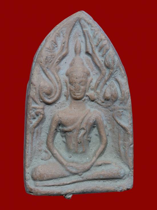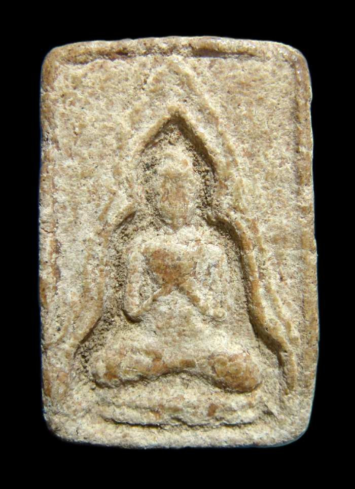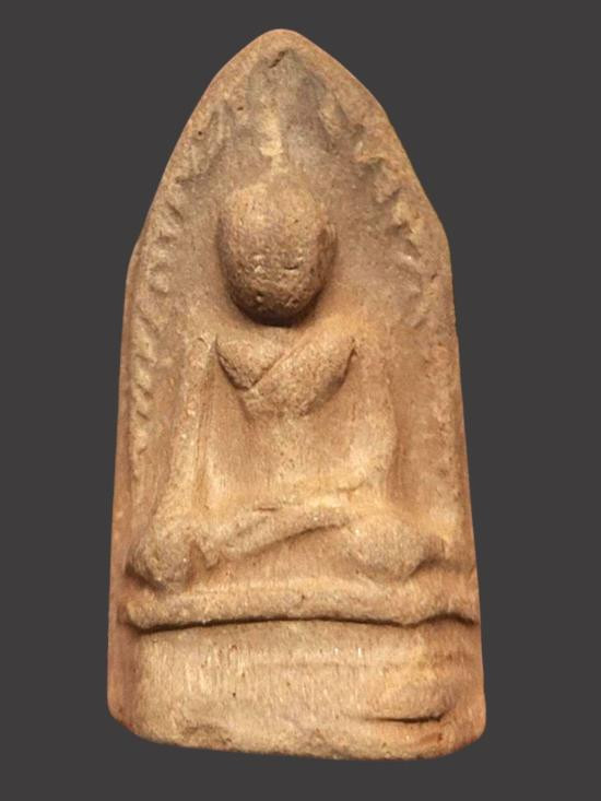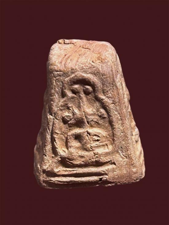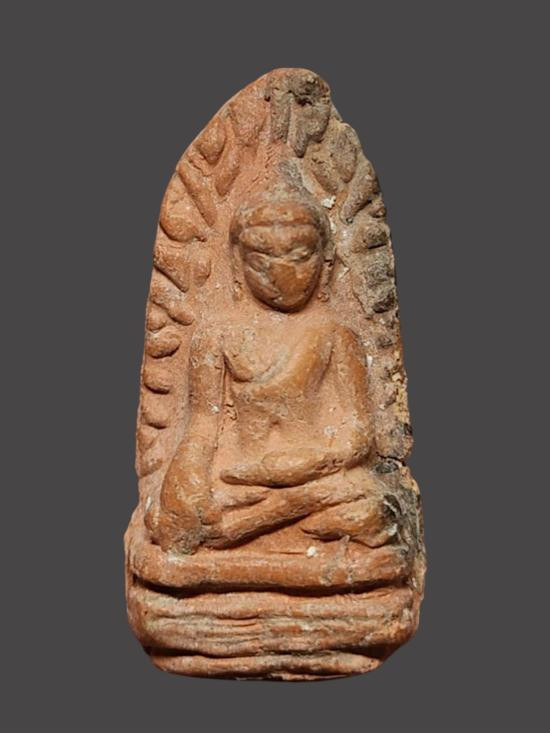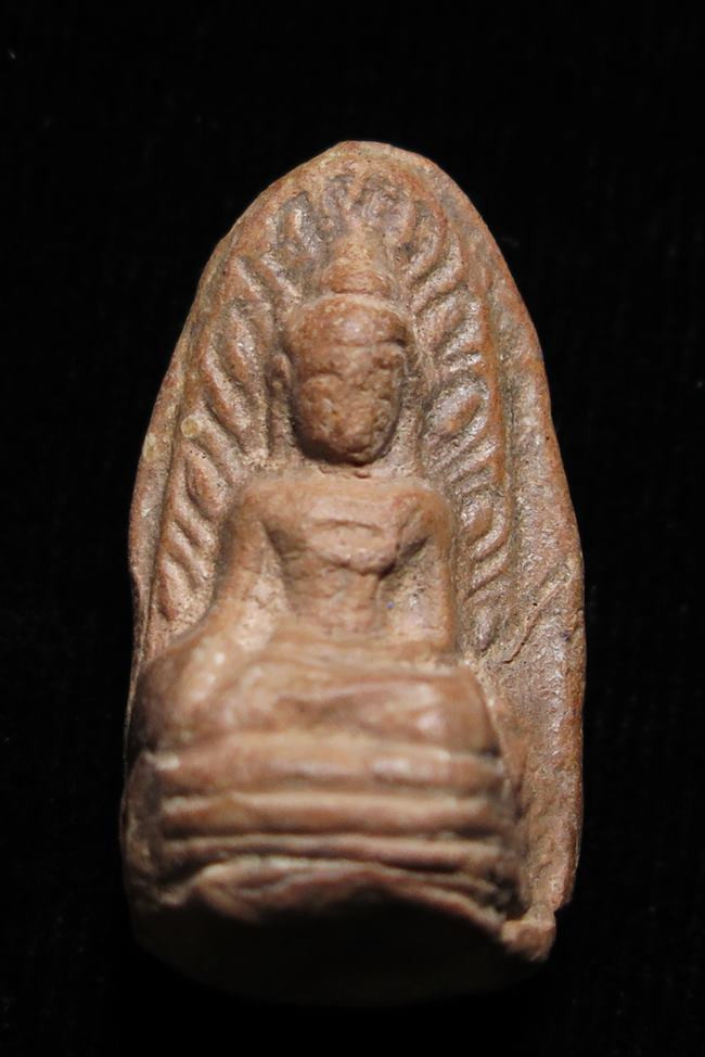 พระพิมพ์ มีซุ้ม ฐานบัว5ดอก เนื้อดิน หลังจารเปียก |