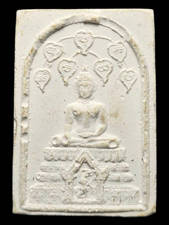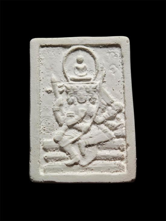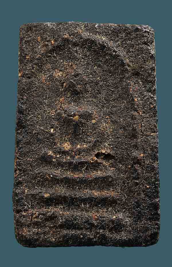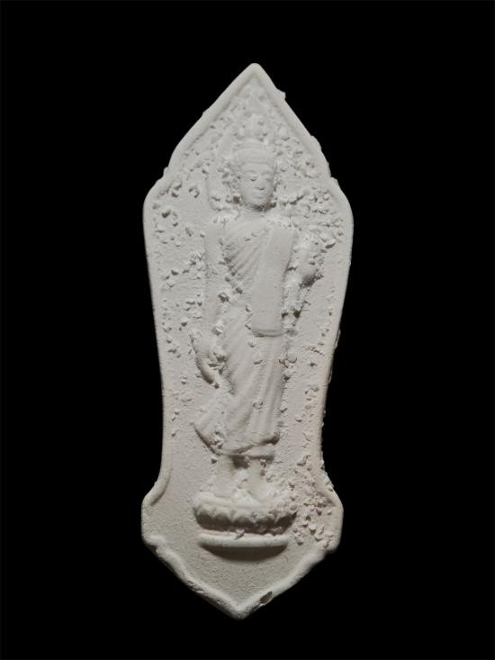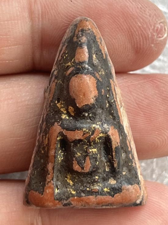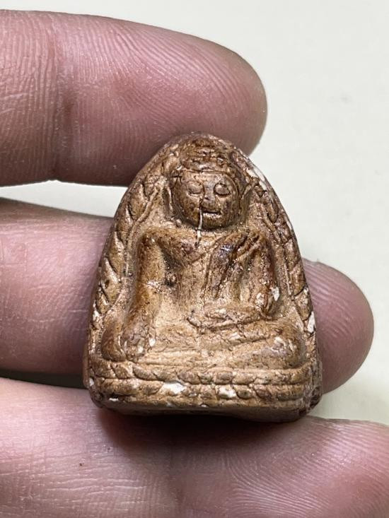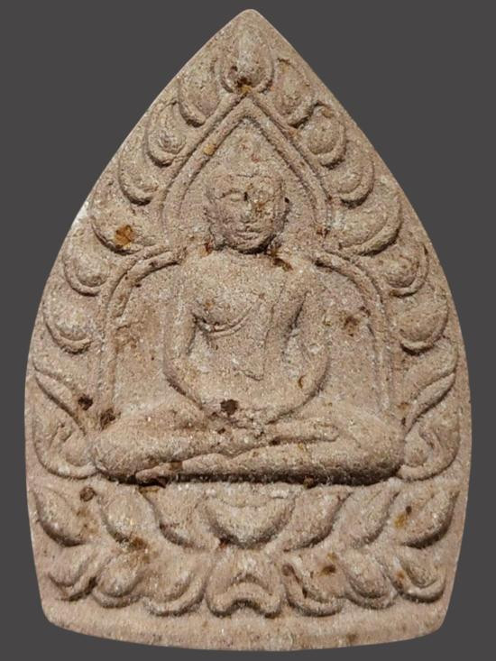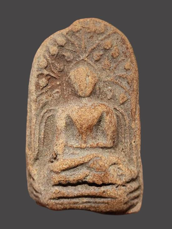 พระพิมพ์ มีซุ้ม ฐานบัว5ดอก เนื้อดิน หลังจารเปียก |