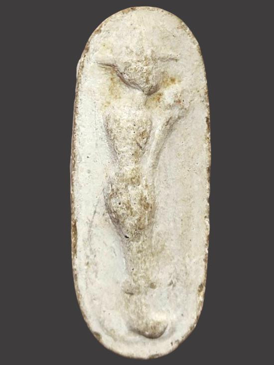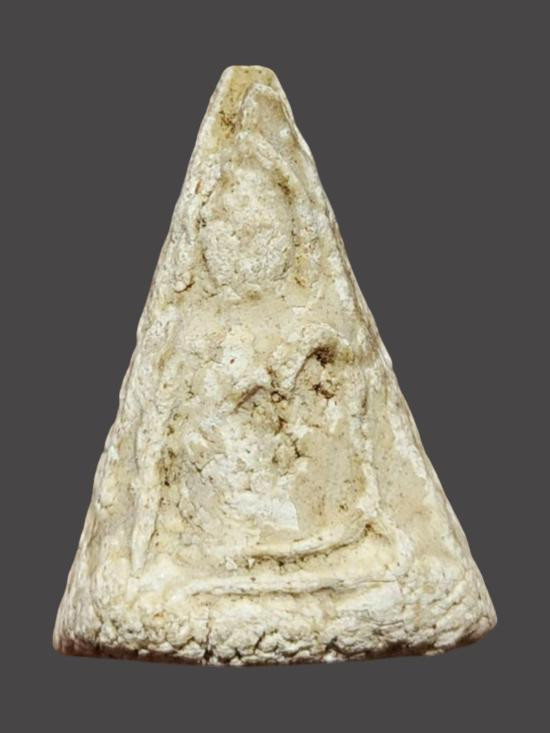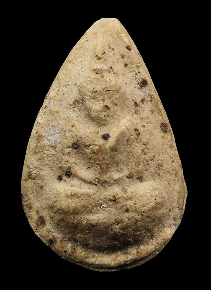พระเนื้อผง ด้านหลังฝังก้อนมวลสาร ชอบเชิญ |